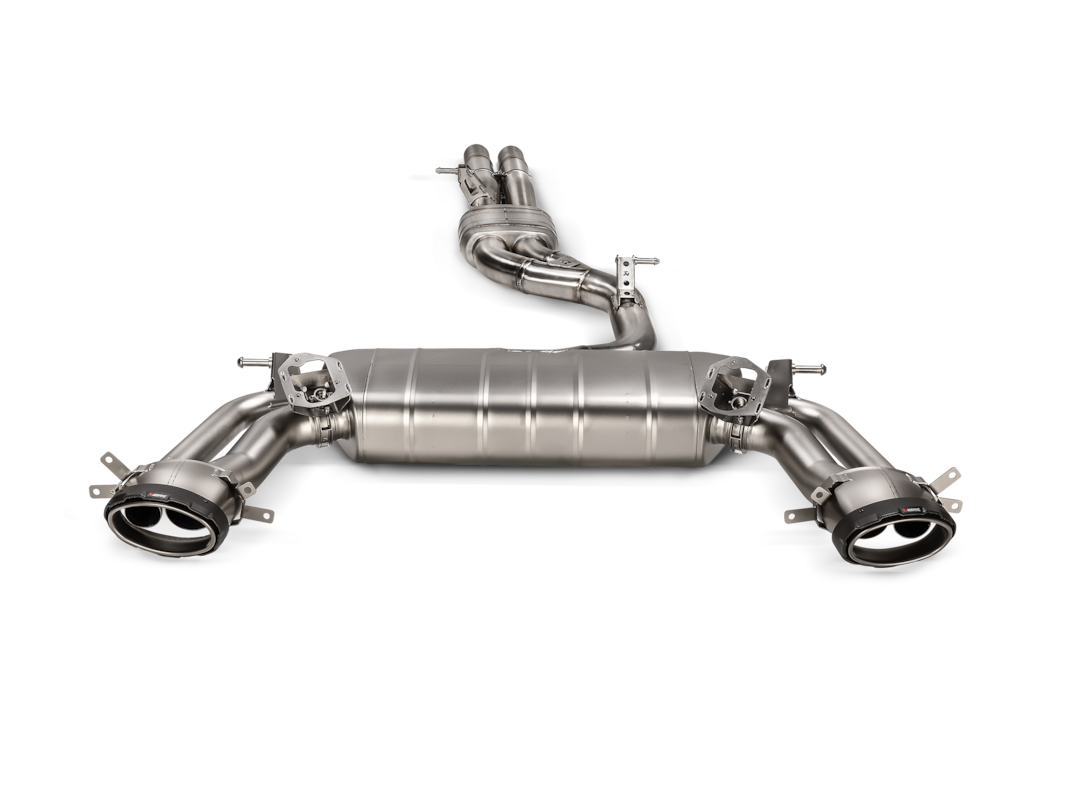 This product is constructed with high-grade titanium tubes and a muffler, which are attached to the car’s stock downpipes with a high-quality stainless-steel link pipe and finished with handcrafted carbon-fibre tailpipes and a titanium inner sleeve.Weighing in at 36.2% lighter than the standard setup, this system provides power gains of 7.5 kW (10.2 hp) at 5,450 rpm and torque increases of 8.8 Nm at 3,900 rpm (when tested on the Akrapovič dyno against an Audi RS 3 with a standard stock exhaust).The in-house foundry casts the housings for the two exhaust valves, one for each side of the muffler to tailor the sound. The distinctive tones of the five-cylinder engine serve up a relaxed and pleasing purr in comfort mode, with a tasteful reminder of the car’s potential when cruising in dynamic mode, and then the full sound experience is delivered while accelerating and reaching for the limit. A high-gloss handmade rear carbon-fibre diffuser is available as an optional extra, as is the optional Akrapovič Sound Kit to offer full control over the exhaust tones.*If the Akrapovič Sound Kit is fitted, the Evolution Line (Titanium) ECE type-approval certificate is not valid.The exhaust system is ECE type approved for cars equipped with an Otto/gasoline particulate filter.