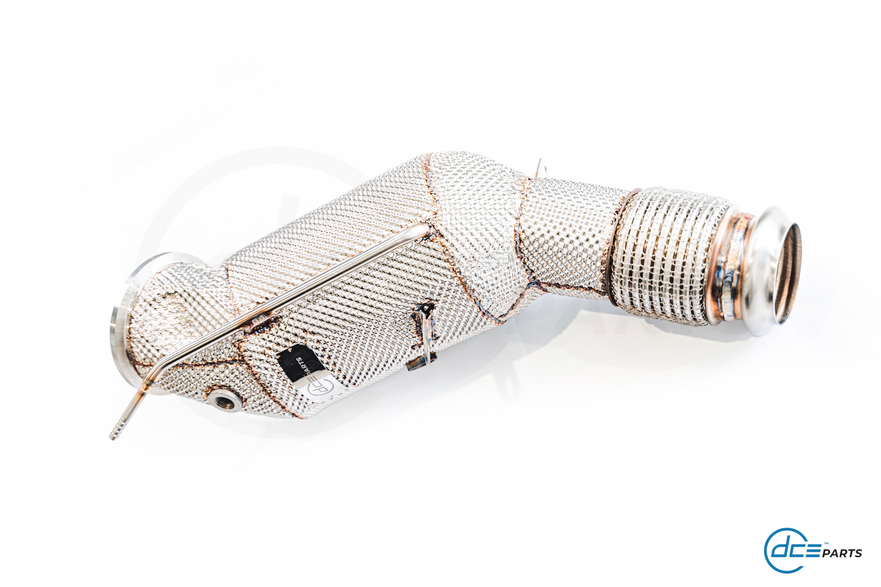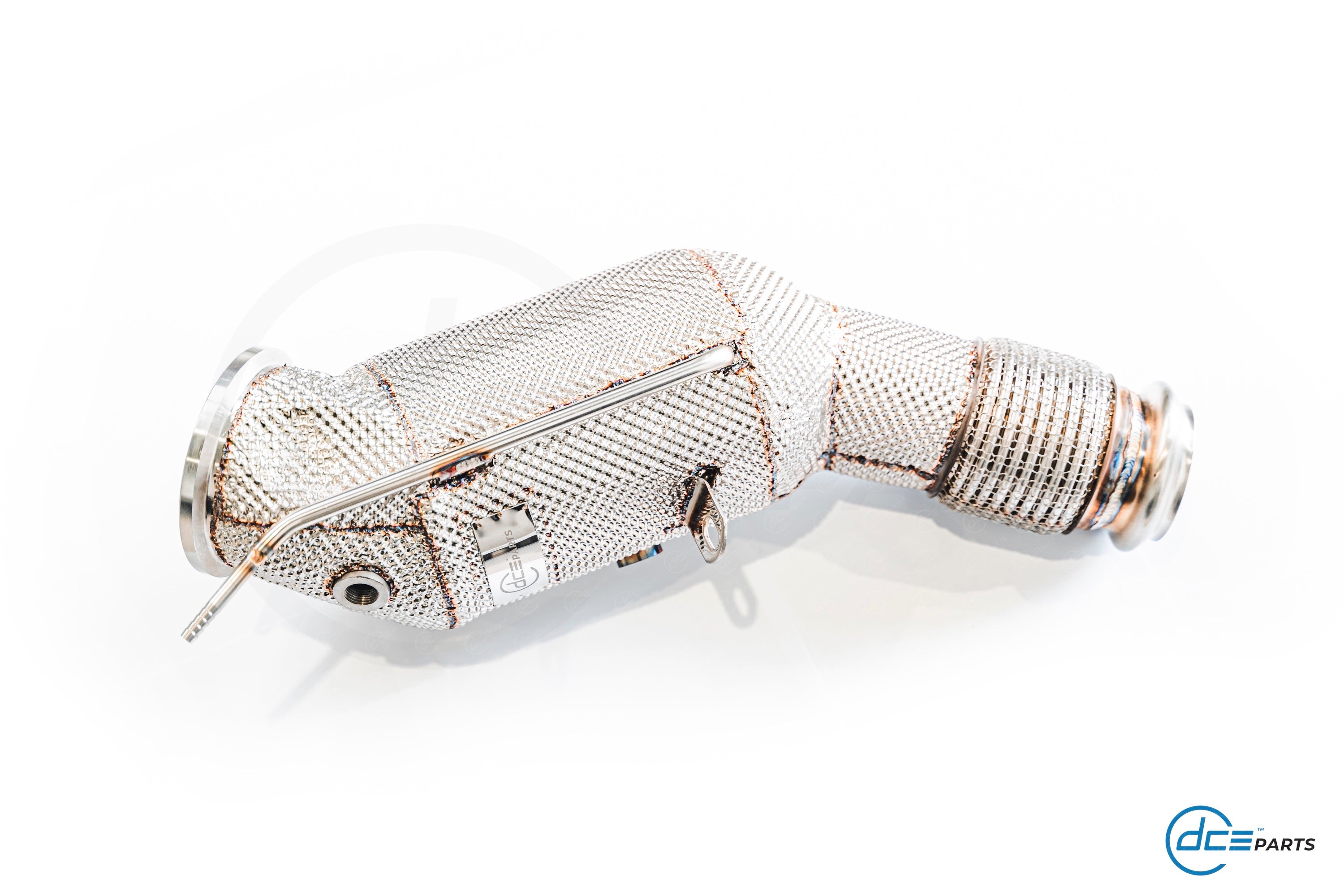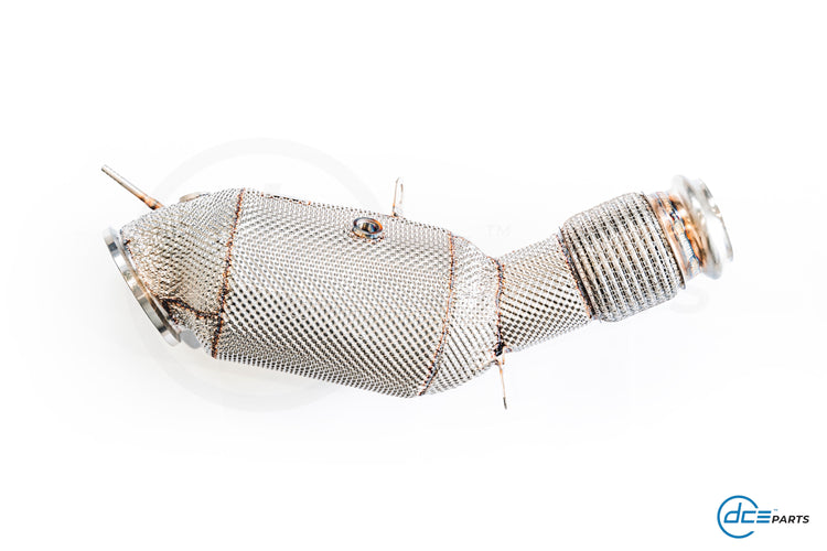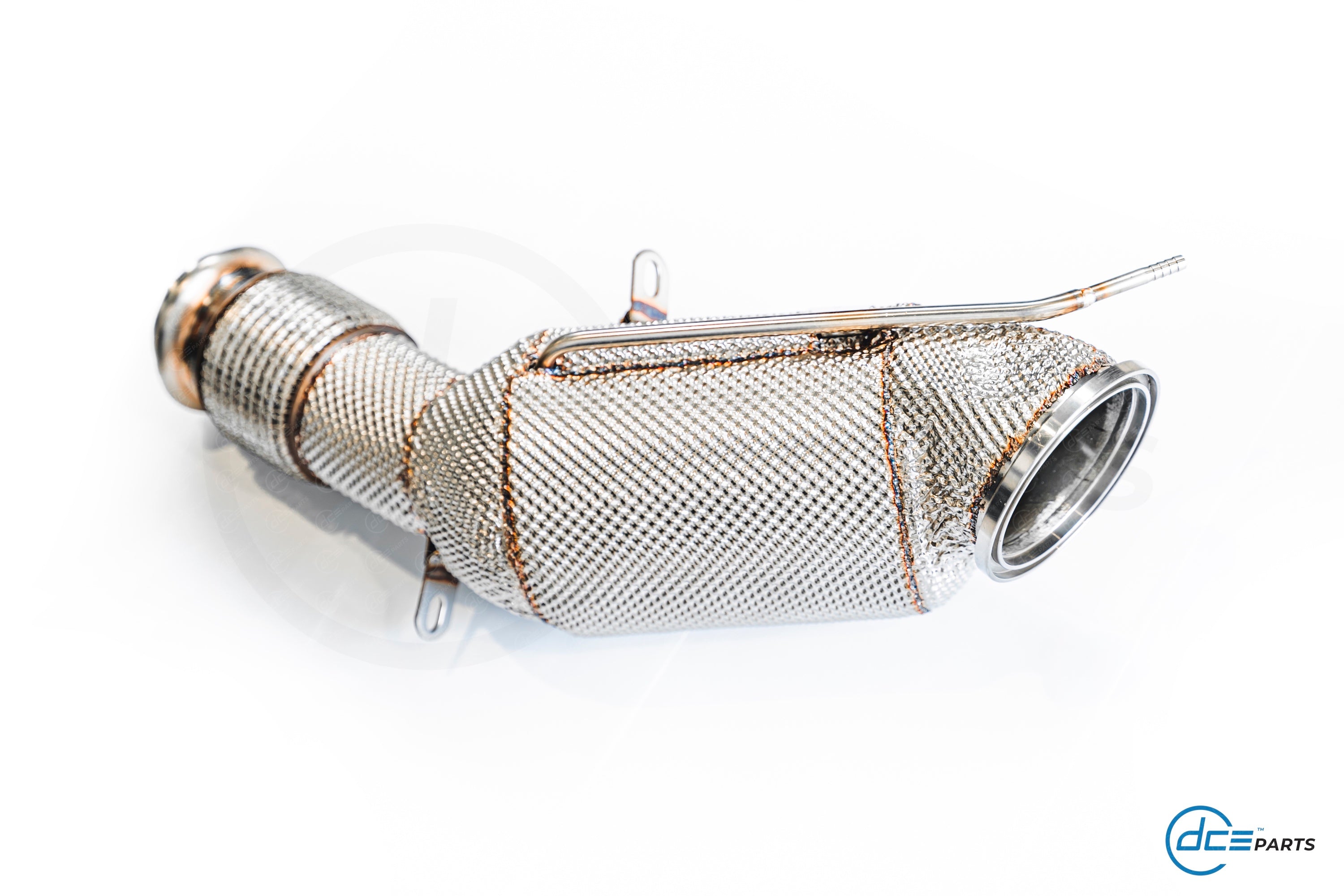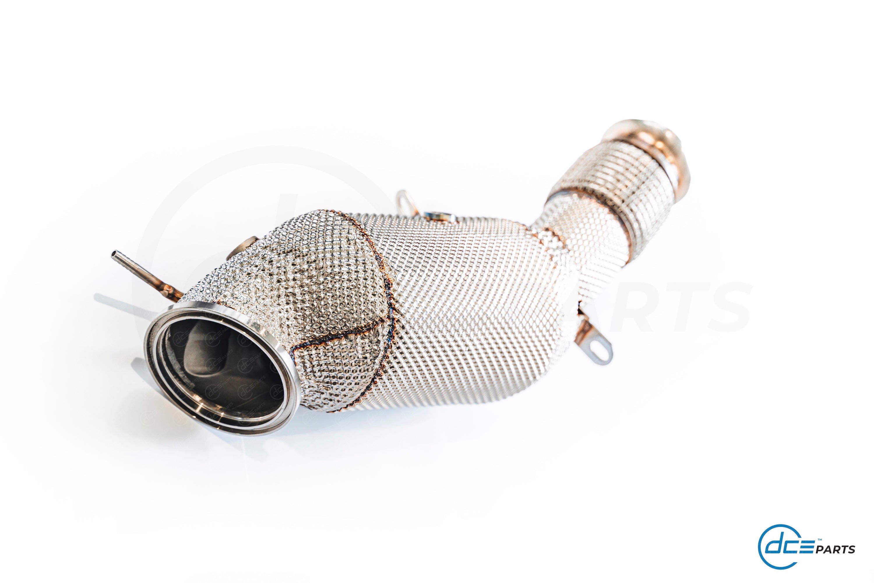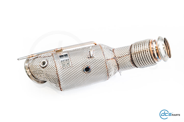 Most DCE Parts Downpipes can be specced with a full straight Decat, a Catalytic Converter Look (but with empty cat) or with a High Flow Cat.
