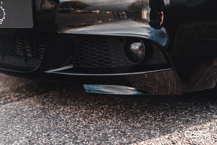 Gloss Black Front Splitter Flaps designed specifically for the BMW 3 Series E90 Sedan and E91 Touring.