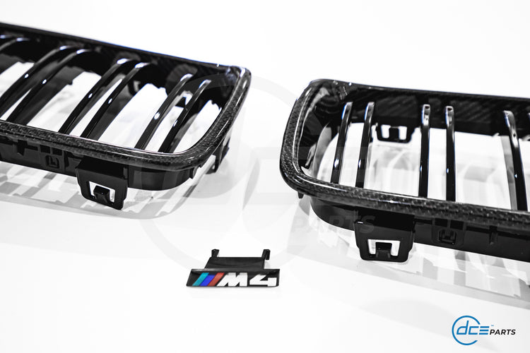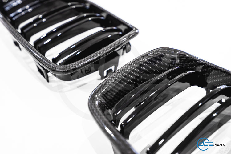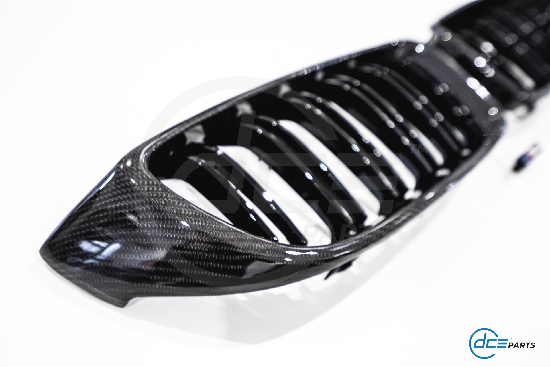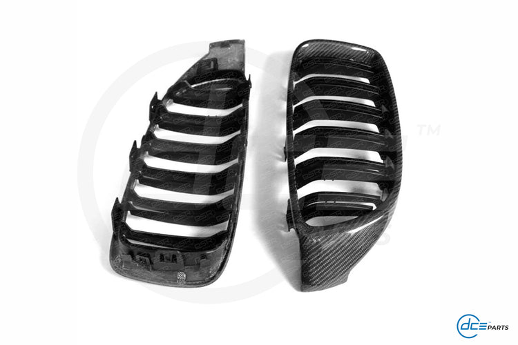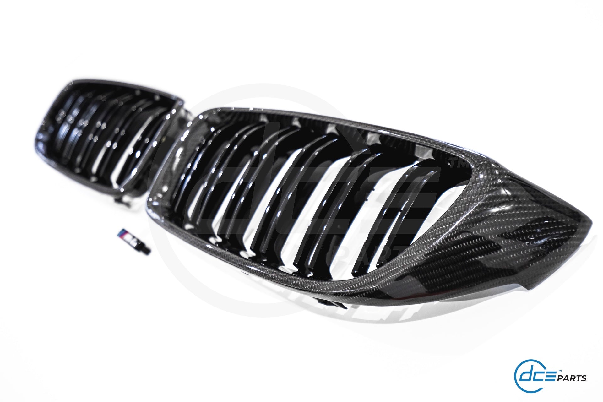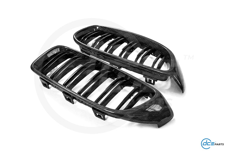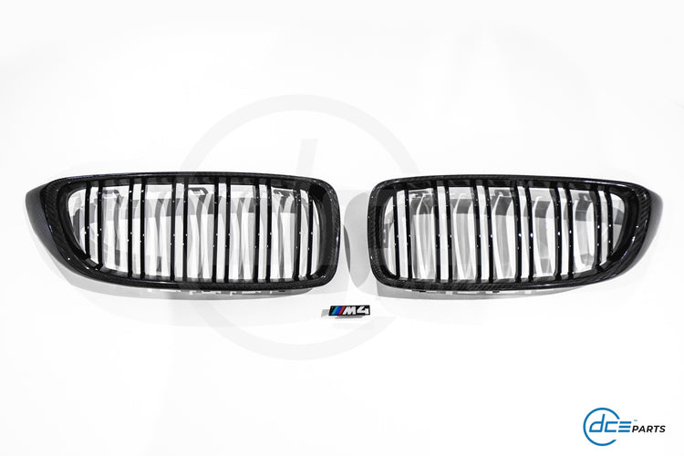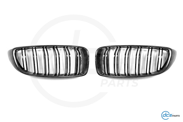 BMW 4 Series, M3 & M4 (2014-2020, F32 F33 F80 F82 F83) Carbon Fibre Double Slat Kidney Grilles for
