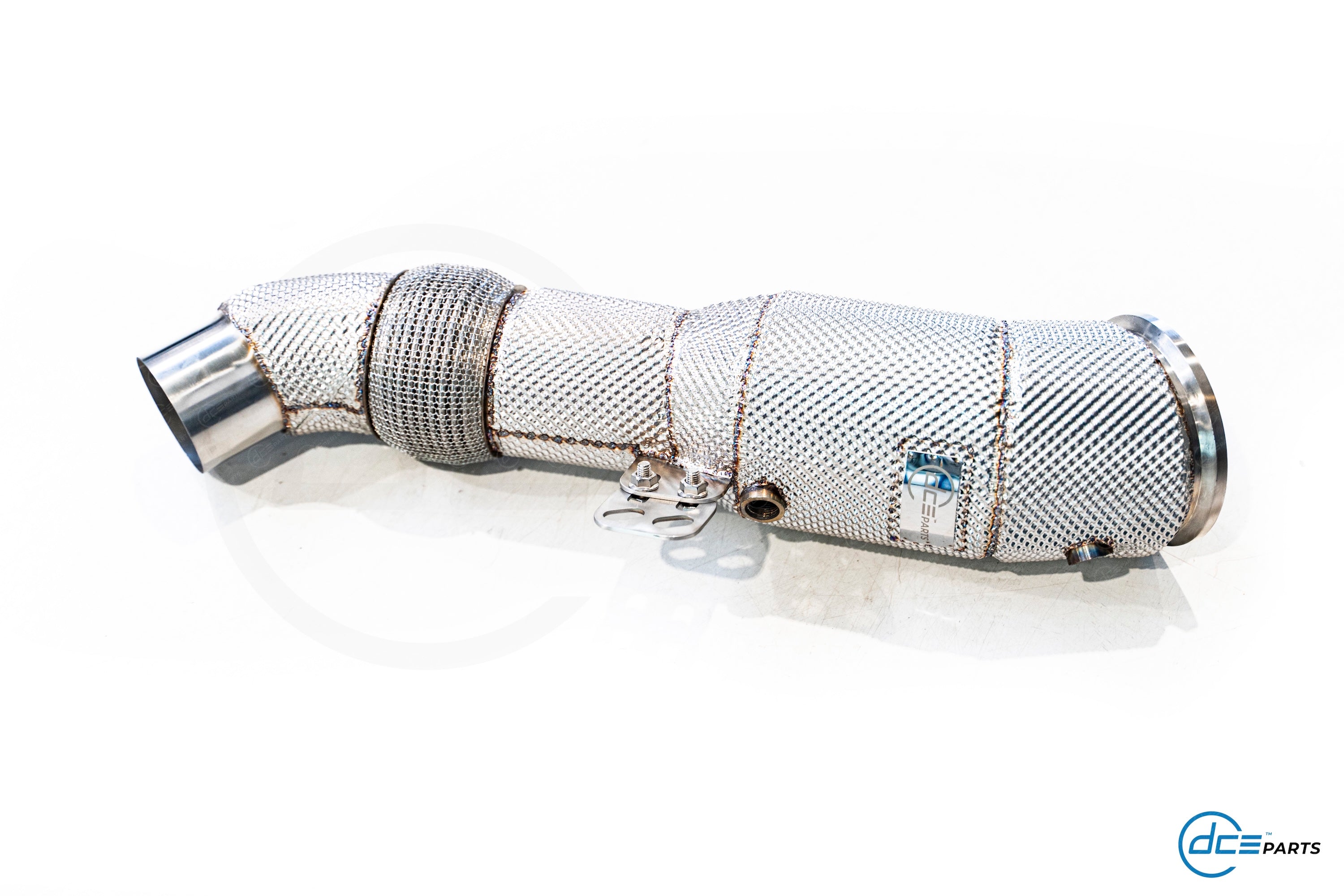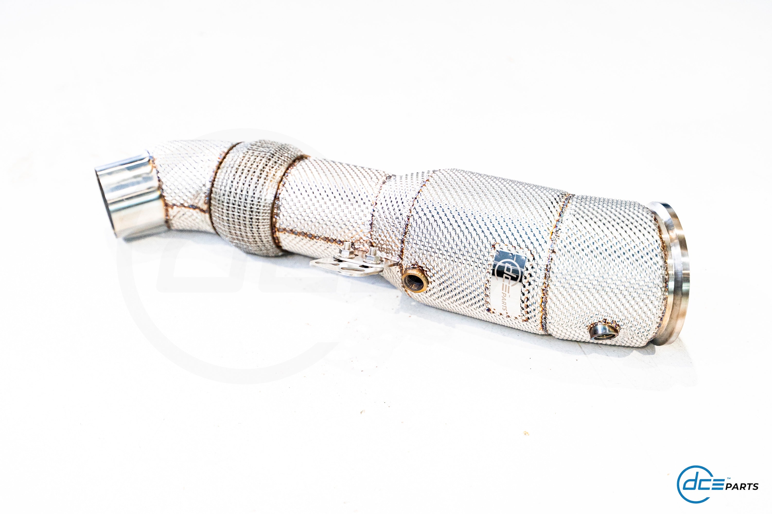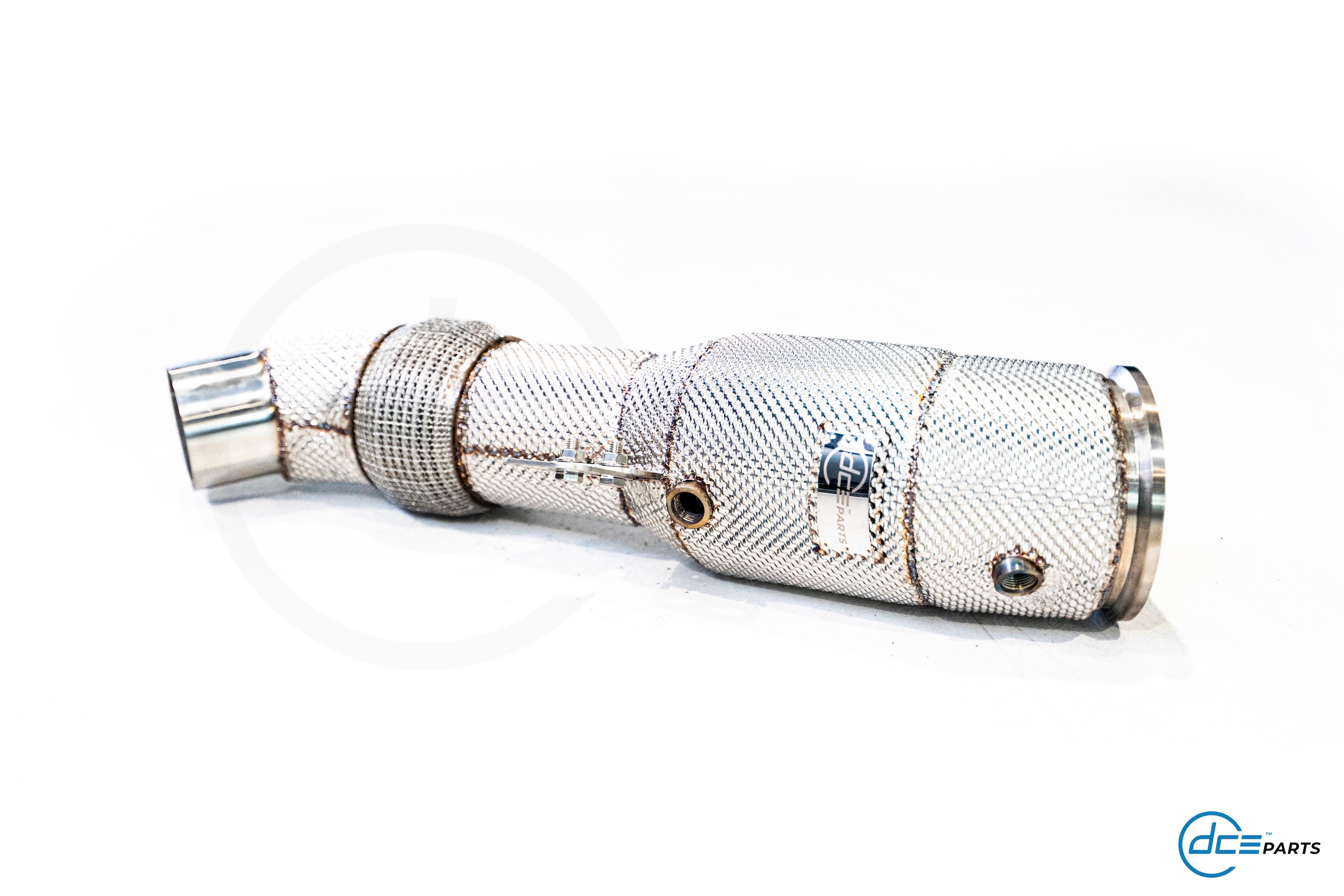Most DCE Parts Downpipes can be specced with a full straight Decat, a Catalytic Converter Look (but with empty cat) or with a High Flow Cat.