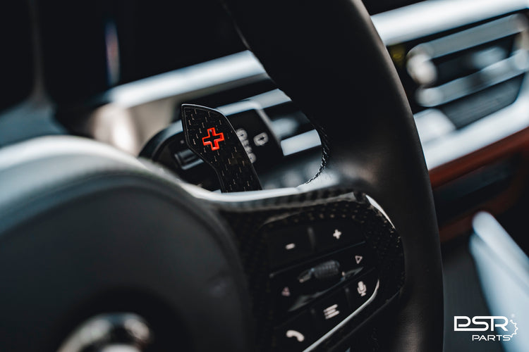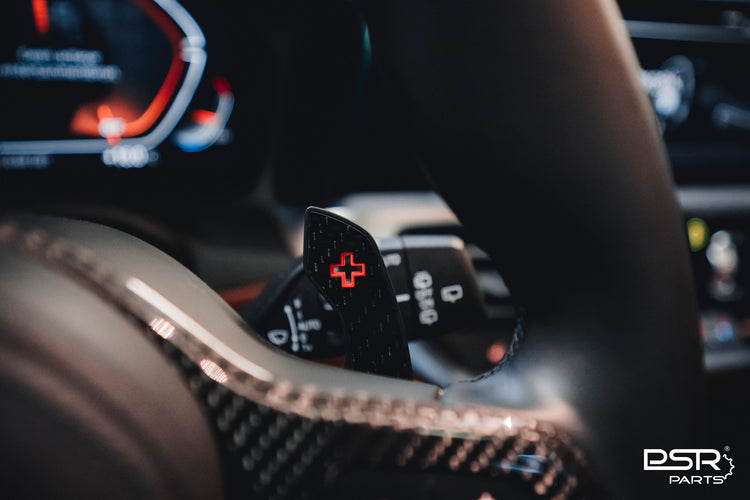 The DCE Parts BMW/MINI F & G-Series Shifter Paddles Blue (F30 F32 F33 F80 F82 F87 - F40 F44 G20 G21 G22 G23 G26 G80 G82 G42 G30 G31 F90) are finished in a red trim, making it fit perfect with the BMW G80 M3, G82 M4, F80 M3, F82 M4, F90 M5 and other M and M Sport Models They of course also fit other vehicles. DCE Parts also offers a red Shift Paddles variant for BMW and MINI.