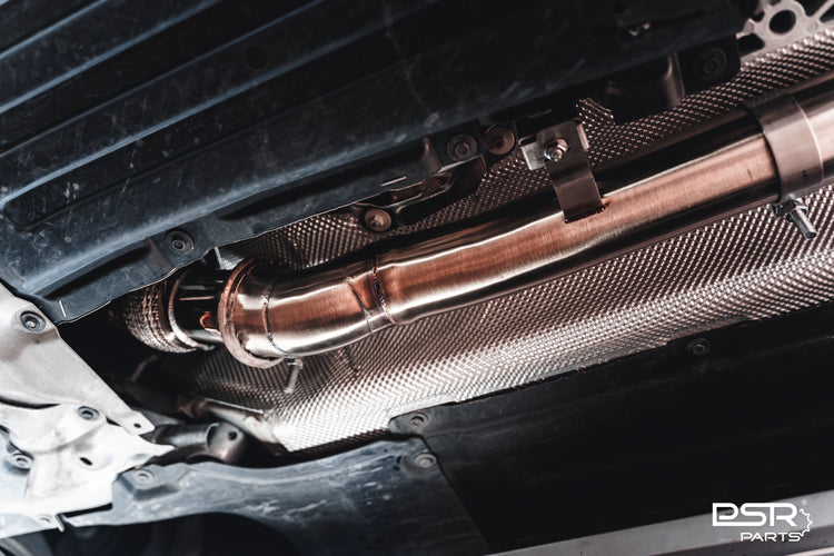 DCE Catless Downpipe with OPF delete and DCE G20 330e Axleback