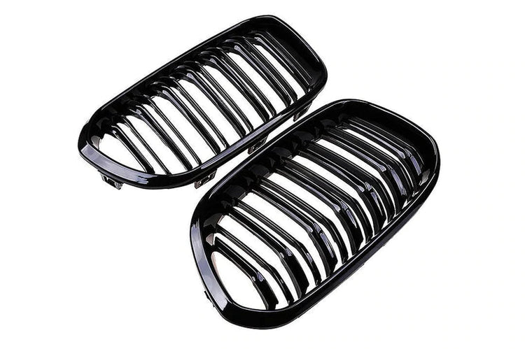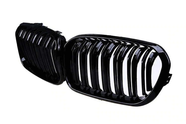The PSR Parts Gloss Black Double Slat Kidney Grilles are a direct replacement for the stock chrome kidney grilles on the front of the M140i & M135i LCI bumper.