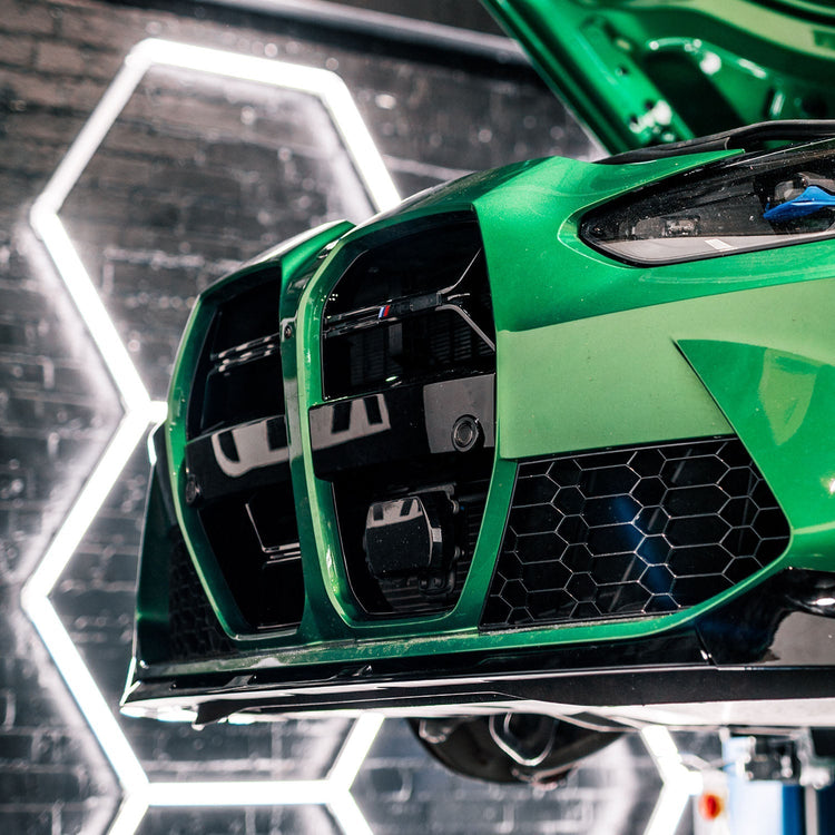 MHC Black Gloss Black BMW G80 M3 G82 M4 CSL Style Front Grille. Transform the look of your M3 or M4's front end with this full replacement gloss black CSL front-grille. Inspired by BMW's limited edition G82 M4 CSL, this grille makes the CSL look accessible to all M3 & M4 owners. The road presence provided by this grille upgrade is unprecedented and you will not be disappointed with the transformation, especially when combined with the other gloss black MHC products we have available.