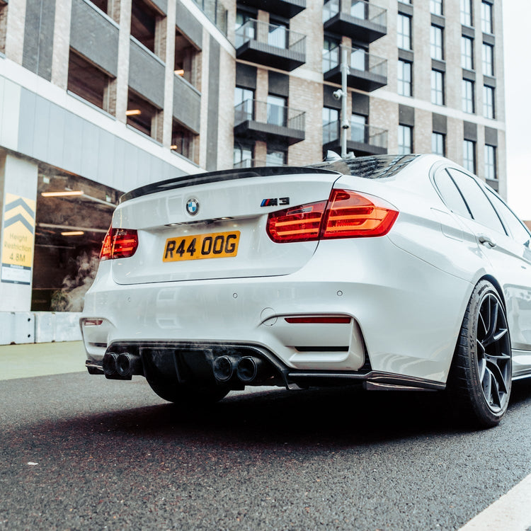 The MHC+ BMW F80 M3 and F82 M4 aggressive 3-piece rear diffuser is the ultimate rear diffuser upgrade for F8X vehicles, manufactured from pre-preg carbon fibre. This carbon diffuser has OEM BMW quality and fitment with a stunning carbon fibre weave that matches that of BMW Carbon. This diffuser is easy to fit at home - alternatively, we offer expert UK fitting at our London-based workshop.