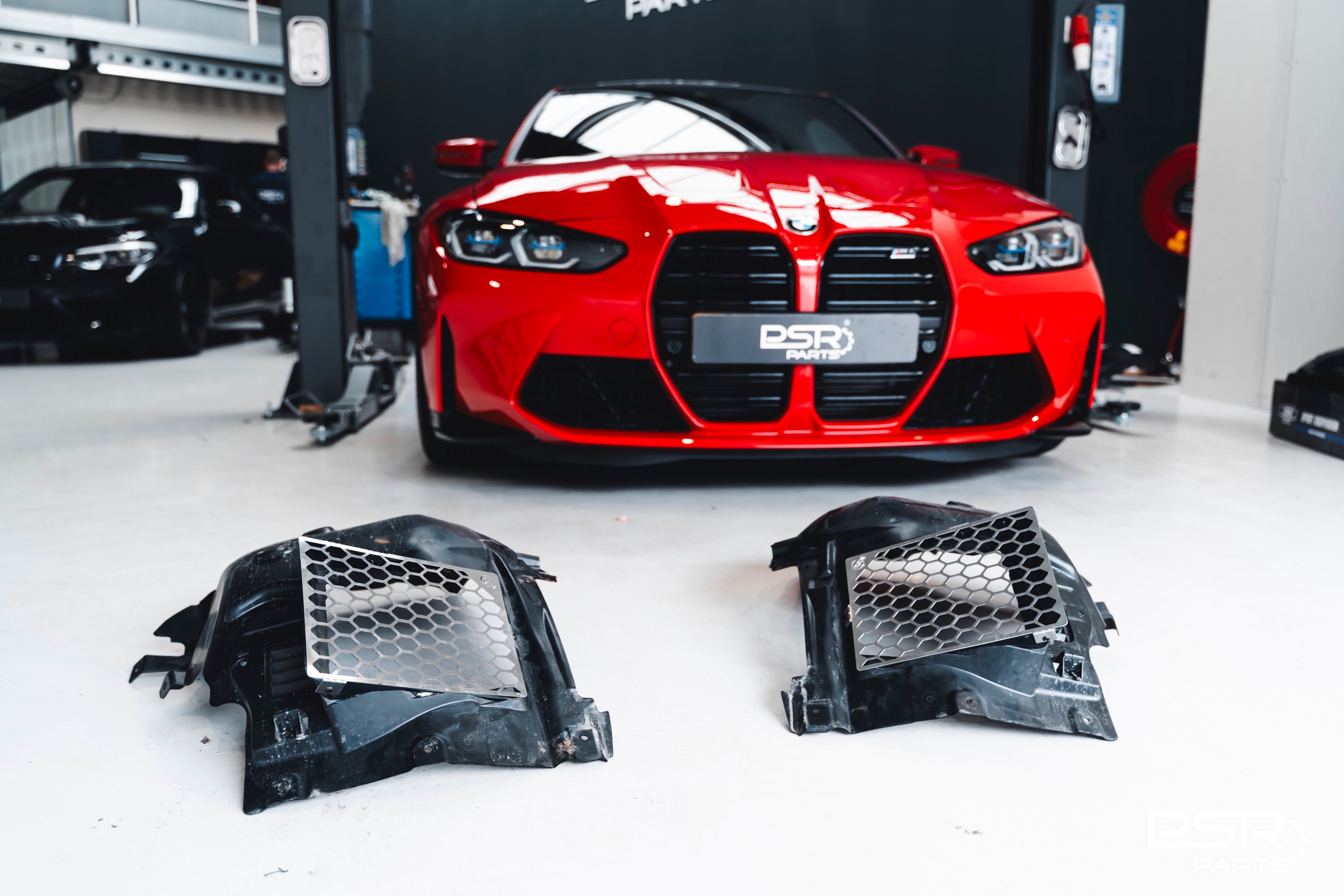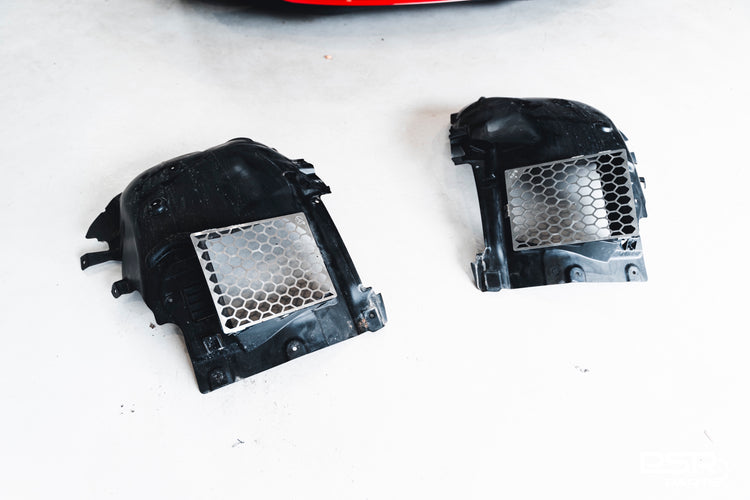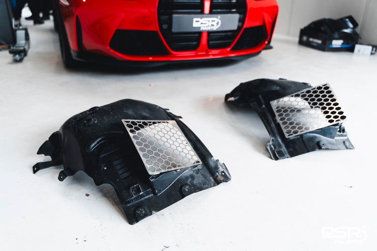 The DCE Part wheel clearance kit solves this issue by bringing the mesh that it rubs on backwards. The original wheel liner has a mesh that sits too close to the wheels and therefore causes annoying rubbing when reversing into a parking space. With the DCE Parts wheel clearance kit for the BMW G82 M3, G80 M3, G81 M3, G82 M4 and G83 M4 you will not have the loud rubbing noise anymore.