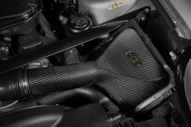 The Eventuri Z8 intake improves upon the OEM Z8 airbox by increasing its volume and optimising the shape of the airbox lids. The new lids, with integrated MAF tubes are specifically designed to reshape airflow, reducing restrictions that can hinder engine performance. They reduce areas of stagnation within the flow path which enables the panel filter to be more effectively utilised. As a result, this leads to improved throttle response and overall performance. The OEM airbox bases are already well-engineered with a large integrated cold air feed that extends behind the front bumper. The Eventuri Z8 intake system leverages this existing design while enhancing it with optimised lids.