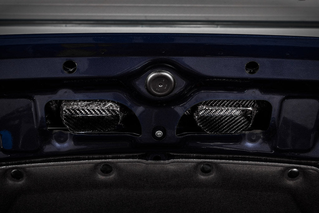 The F5X JCW Eventuri system uses our Patented Carbon fiber Housing which provides an aerodynamically efficient airflow path from the filter to the turbo. Not just another cone filter with a heat shield but a unique design which invokes the Venturi affect and maintains laminar flow conditions to reduce the drag on the turbo. You can read more about the housing design and how it works HERE.