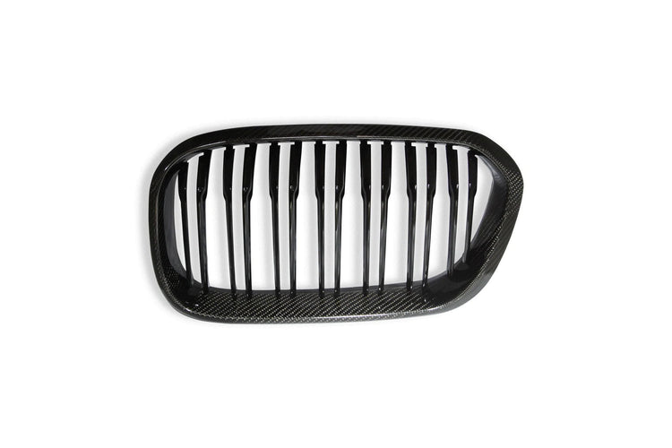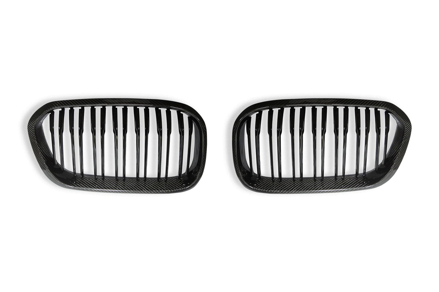 The PSR Parts Carbon Fibre Double Slat Kidney Grilles are a direct replacement for the stock chrome kidney grilles on the front bumper.