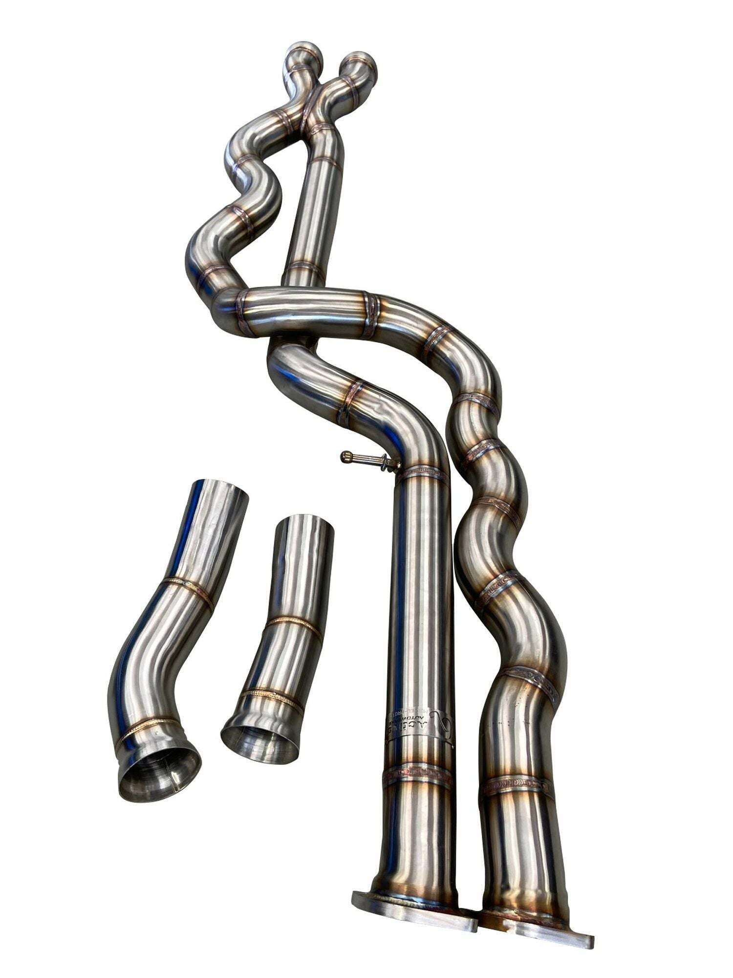 Initial exhaust solutions focused on correcting this variance in the space behind the differential housing with one complaint being the inability to keep existing rear exhaust systems. Active Autowerke decided to leverage our expertise in having already developed a single mid-pipe system for the F-series M cars and devoted our R&D resources into developing the mid-pipe solution which you see here. Our R&D looked at the ways this could be done and while making up the difference in the rear section of the exhaust seemed like the most logical place, it would require a brand new rear exhaust system and we were aware that many BMW owners would not like this option. So we looked at adding length to the passenger side midpipe section and creating a new crossover section to create an exhaust note that's never been akin to the "S55 sound". Using a patented solution of a crossover with sinusoidal pipes allowed us to correct the downpipe length variance before mixing the sounds giving the expected 6 cylinder sports car exhaust notes.