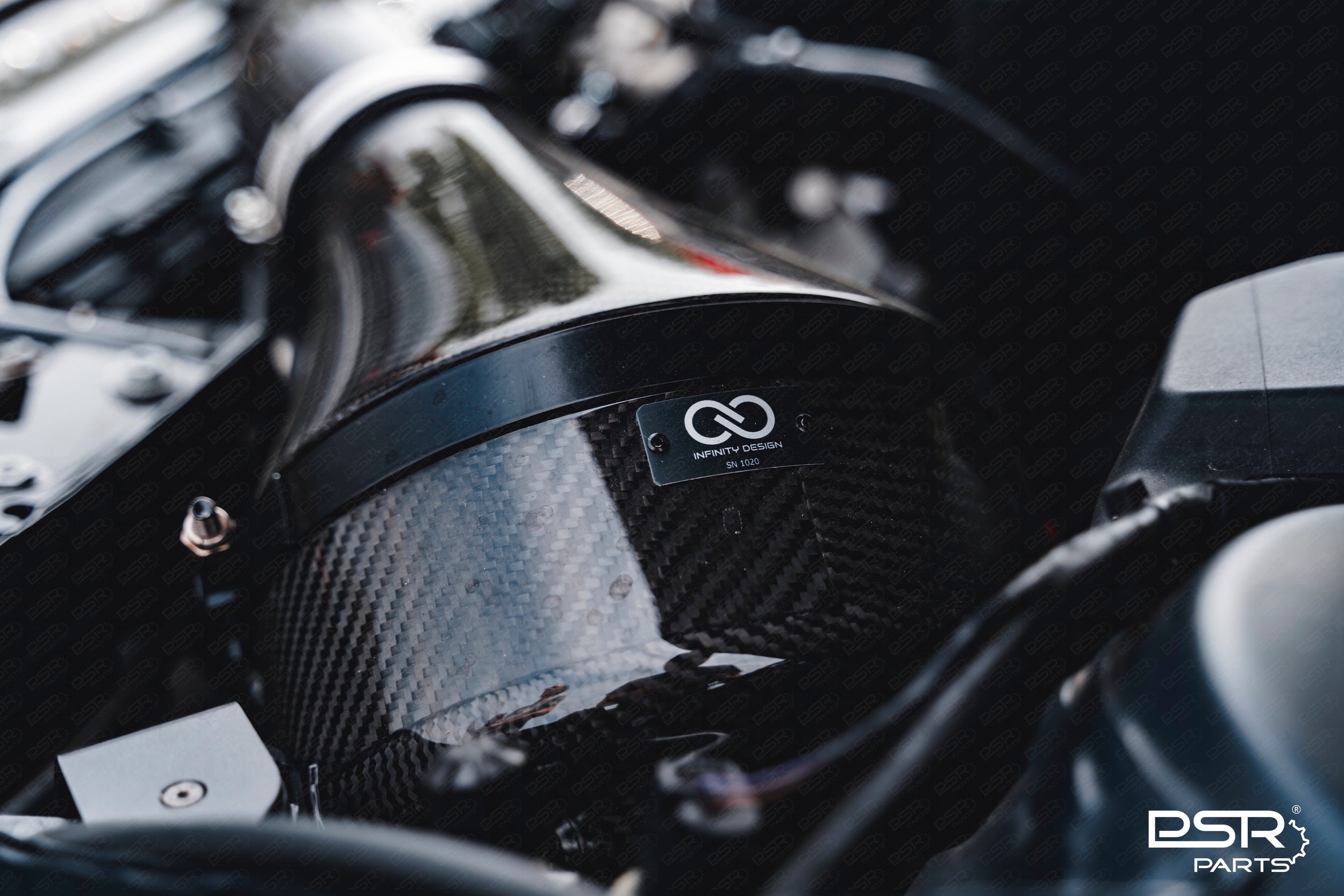 This fully developed and intelligently designed intake system is not just something that looks good in the engine bay but does an impeccible job as an air smoothing device, increasing air available, increasing air speed into the turbo's, allowing the turbo's to spool faster, filters for longer more efficiently, keeps intake air temperatures low and making a sophisticated race car like intake noise under load. Most important of all, it is the way the engine becomes more alive, responsive and enjoyable to use not just under full load but also normal every day driving.