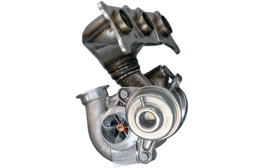 The Mosselman Upgrade Turbocharger Set (MSL50-65) for the N54 engine offers a huge boost in performance. These turbochargers are equipped with an MHI TD04 cartridge which has been integrated ingeniously to ensure plug and play installation with great reliability and maximum power. Depending on the modifications done to the car and fuel type, this turbo set can deliver up to 650hp!*