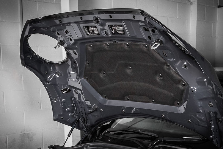 The F56 MINI Eventuri intake system is another example of our “Complete System” principal. It is a sealed system which ensures that the turbo does not draw hot air from the engine bay but enhanced with a functional bonnet scoop which forces ambient air into the intake duct. This duct has a larger internal volume than the stock version and also draws air from the stock location above the radiator. The combination of a sealed system with an air scoop results in lower intake temperatures than the stock airbox and avoids heat soak which is a common issue especially on higher powered MINIs. To ensure the smoothest flow possible we use our Patented filter housing coupled with a CNC machined MAF tube to ensure the smoothest possible flow to the turbo.