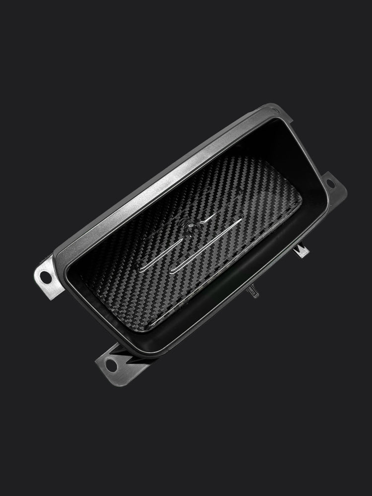 Featuring a 15W Fast charging coil that works with all Qi enabled devices (iPhone 8/8S/9/9S/10/X/11/12/13/14/15 including Pro / Plus / Max models, Android devices, Samsung, LG, ETC) also works with Qi enabled ear phones (Galaxy Buds, AirPod v2, AirPods Pro, ETC). 100% Plug and Play. No Cutting or splicing of any wires. Includes everything needed for install including tools (tray option only). Made of high quality injection molded ABS plastic. New!! CF look finishes are now available for all parts of our wireless charger!