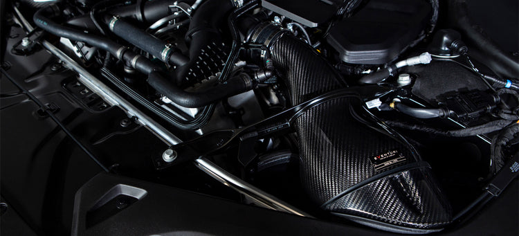 The F90 M5 Eventuri system uses our Patented Carbon Fibre Housings with our Gen 2 bespoke filters, which provide an aerodynamically efficient airflow path from the filter to the turbos. Not just another cone filter with a heat shield but a unique design which invokes the Venturi affect and maintains laminar flow conditions to reduce the drag on the turbo.