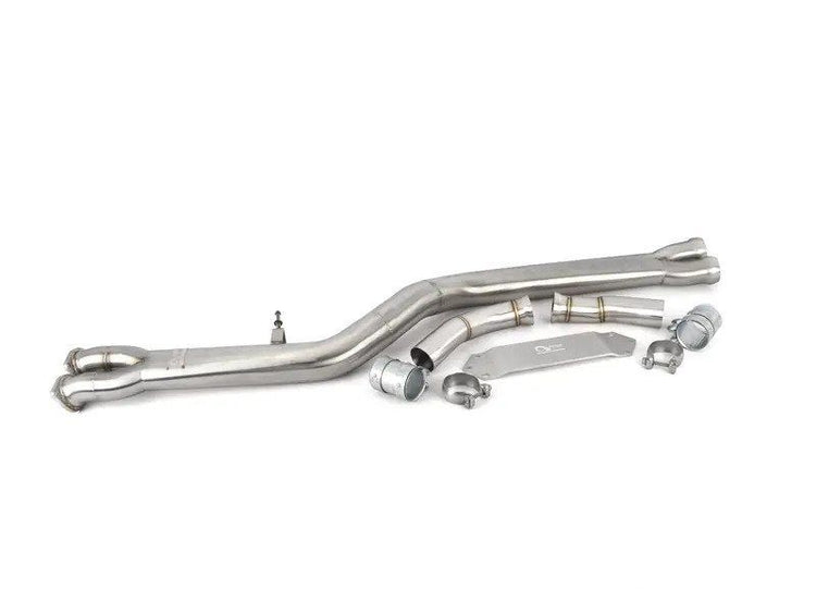 The Active Autowerke F87 Mid Pipe was specifically designed to eliminate the highly restrictive nature of the S55 thus creating optimal exhaust flow and drastically improving performance. In addressing the annoying sound ( described by many like that of a weed-eater ) we needed to better understand the issue. After much research and testing we discovered the synchronization of the Turbos as the main factor in the sound. The solution was a single mid pipe which eliminated much of the annoying sound. The next challenge was making a large 3.5" pipe ( needed for optimum performance ) fit without ground clearance issues - thus the oval pipe. Engineered for an exact fit on the new BMW M2 Competition, the difference in power with this mid pipe will be noticeable the moment it is installed!