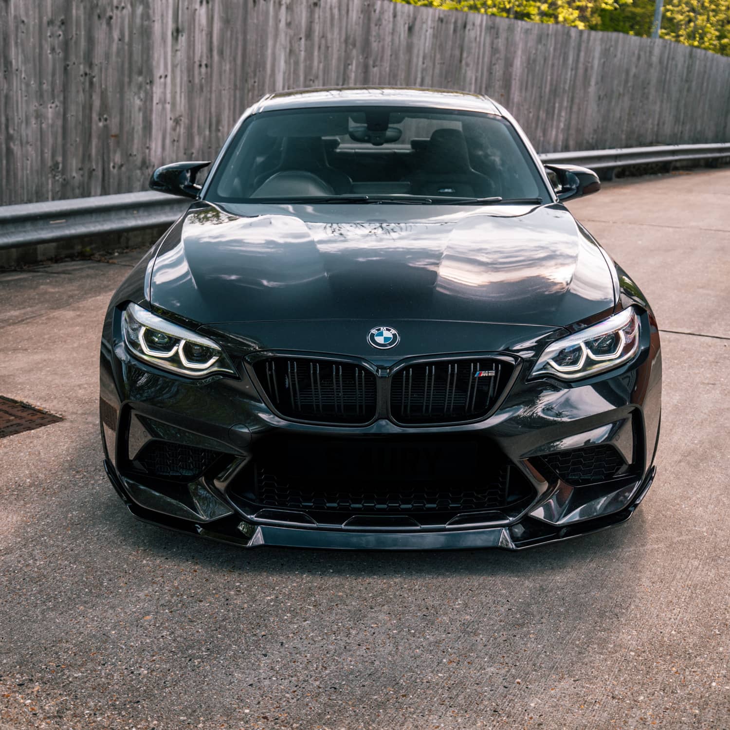MHC Black BMW F87 M2 CSM Style Front Splitter In Gloss Black is a stunning front splitter designed to integrate features from both BMW's M Performance and CS design language. The side fins are inspired by the aggressive M2 CS front splitter, whilst the rest of the splitter remains more sleek and stealthy in appearance.