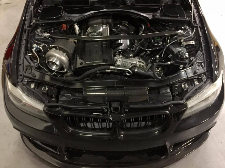The most important component of any intercooler is the core. The core cools the charged air from the turbo before it enters the engine and the OEM BMW tube and fin intercooler is designed to support low boost levels and air flow. Once boost levels and air flow are increased, the OEM unit is easily overwhelmed and can not keep up with the cooling demands of a tune running more than OEM boost levels. This results in heat soak which will result in a power loss and a higher potential for pre-detonation in the upper RPM range.